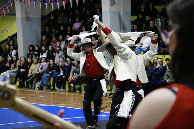 El programa comenzó con la presentación del BAFO UdeC, agrupación que recientemente cumplió 50 años de vida, y que mostró una primera serie de cuecas con sus integrantes de los elencos de danza y música. Más tarde, se invitó a las y los asistentes a sumarse al baile tradicional, transformando la cancha del gimnasio B en una fiesta de pañuelos al aire.