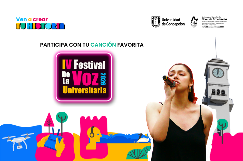 La Dirección de Servicios Estudiantiles, Radio UdeC y la Corporación Cultural Universidad de Concepción dan la bienvenida a toda la nueva generación de estudiantes 2026 e invitan a la comunidad estudiantil a participar de la cuarta versión del Festival de la Voz Universitaria.
