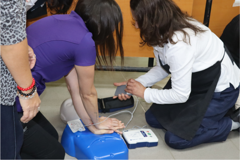 Por su parte, la especialista en Enfermería detalló que la formación se centró en conocimientos y técnicas de reanimación cardiopulmonar (RCP) basadas en los lineamientos más actualizados. Agregó que la instrucción se rigió por las normas de la Asociación Americana del Corazón (AHA), actualizadas el año pasado. “El objetivo es entregar conocimientos sobre la identificación de un paro, el protocolo de actuación y la técnica de RCP, complementado con el uso efectivo del DEA”.